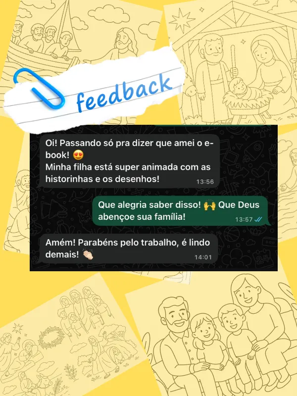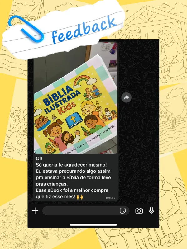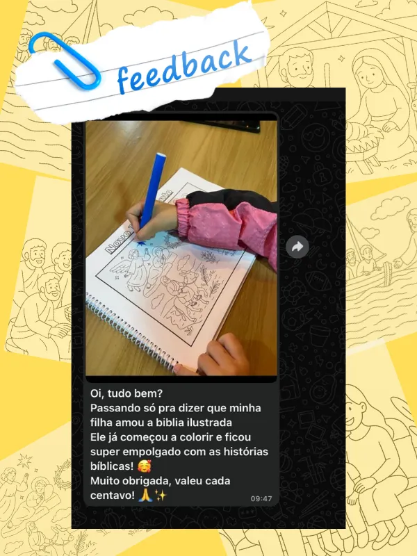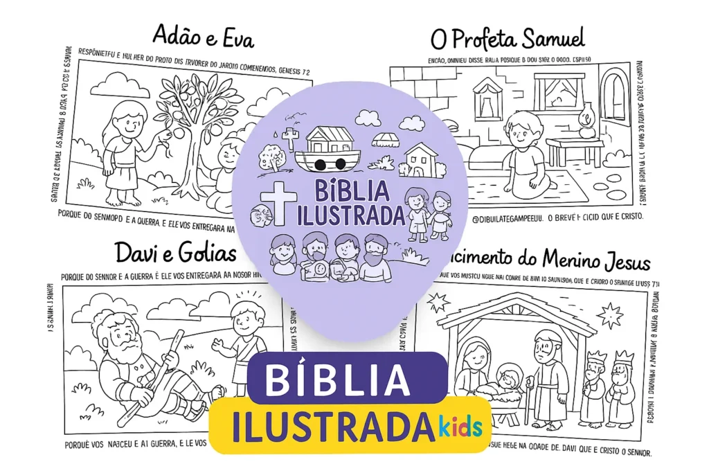 O conteúdo foi pensado para crianças de 4 a 10 anos, com linguagem acessível, ilustrações simples para colorir e ensinamentos bíblicos adequados para essa fase.